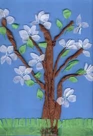 5. Wykonaj pracę plastyczną – wyklejankę „Kwitnące drzewa”. Przykłady: